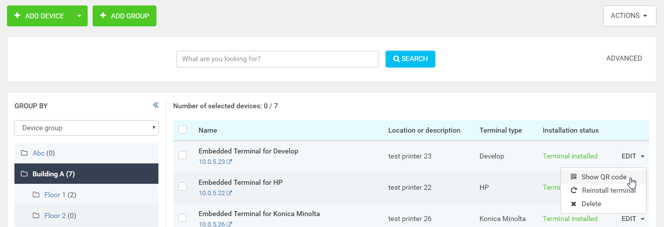 A QR Code can be displayed by clicking Show QR Code in the device's menu.